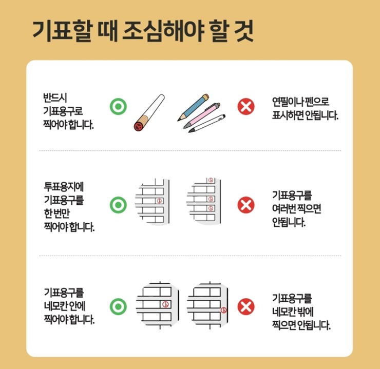 ✔️ 반드시 비치된 기표용구 사용 (펜, 연필 등 사용 시 무효)